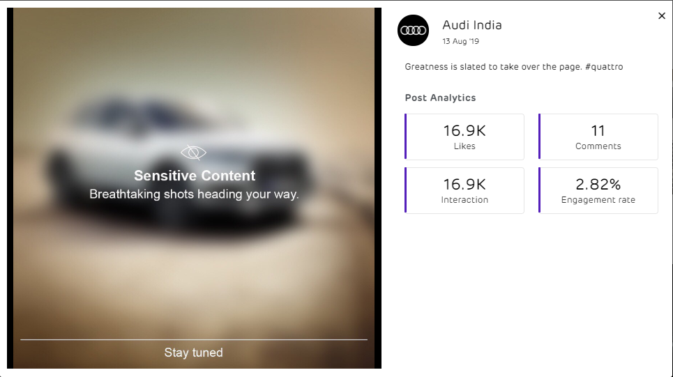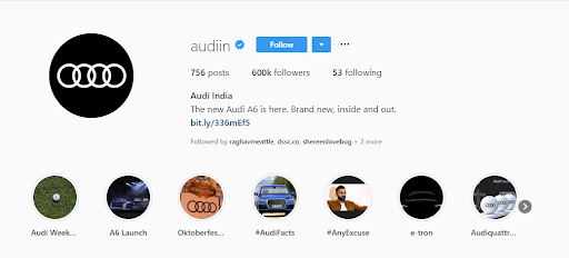 On Instagram, Audi India has a total of about 600 K followers. With 756 posts on its Instagram feed, the brand has received over 600 K interactions in the past 6 months. The engagement rate on their Instagram handle is 1.11%, as seen in the last 6 months.
