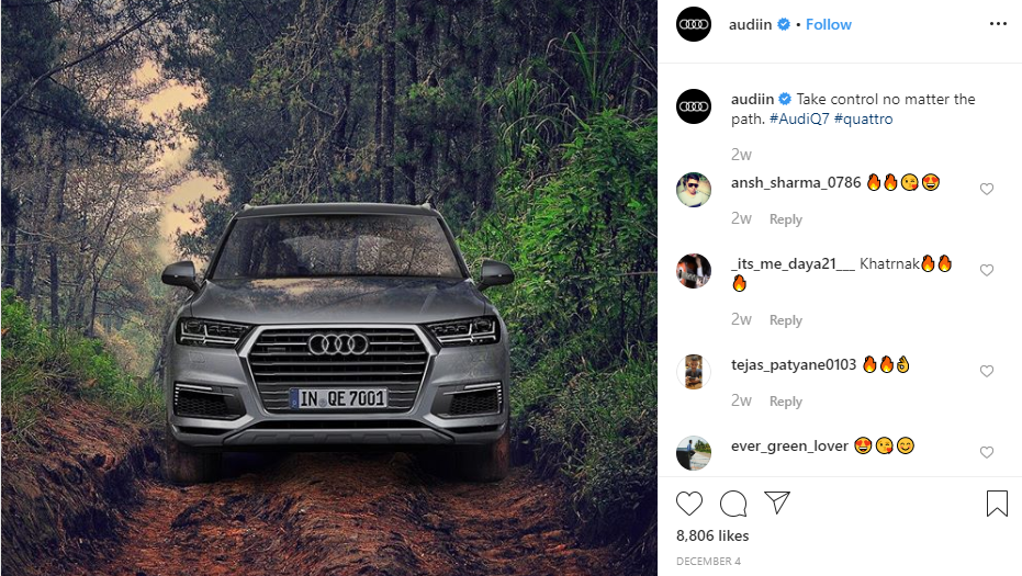 Going by the tagline ‘Taking charge of electronic mobility since 2019’, Audi showcases its latest car models and features on social media, in an attempt to entice audiences. Living up to its name as one of the top-notch automobile brands, Audi offers high-quality visual content coupled with catchy and interesting copies.