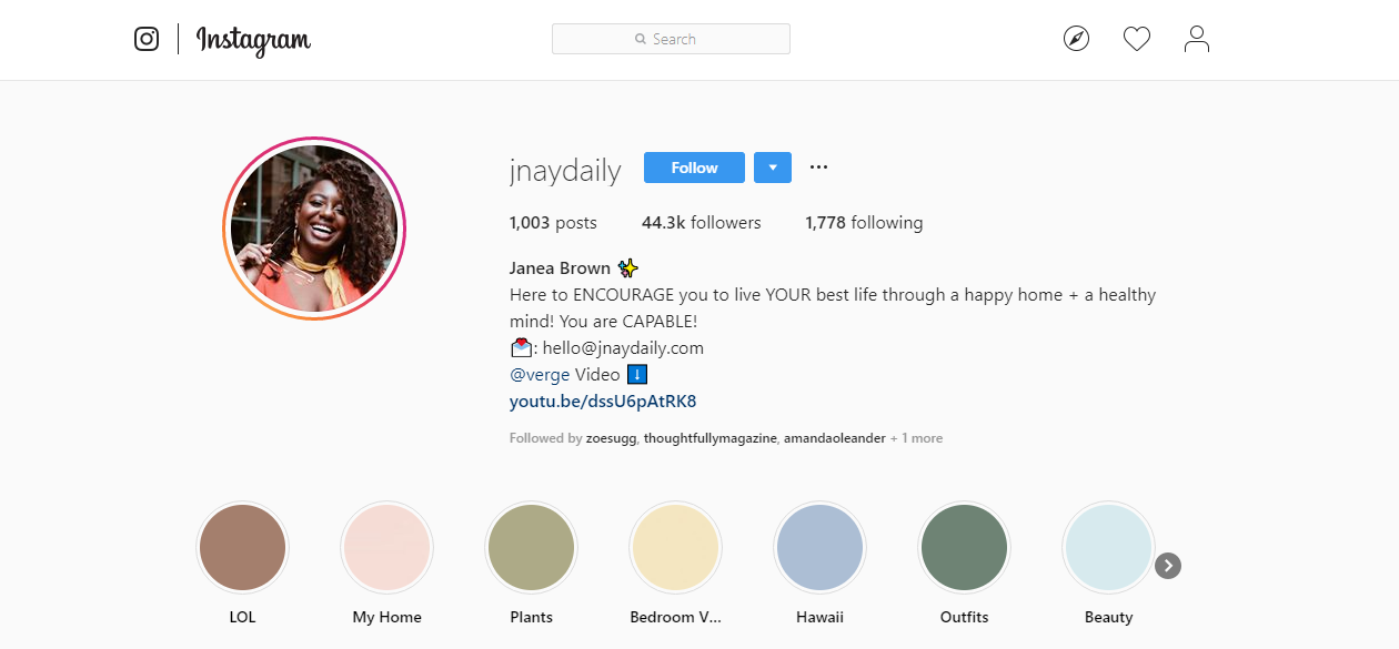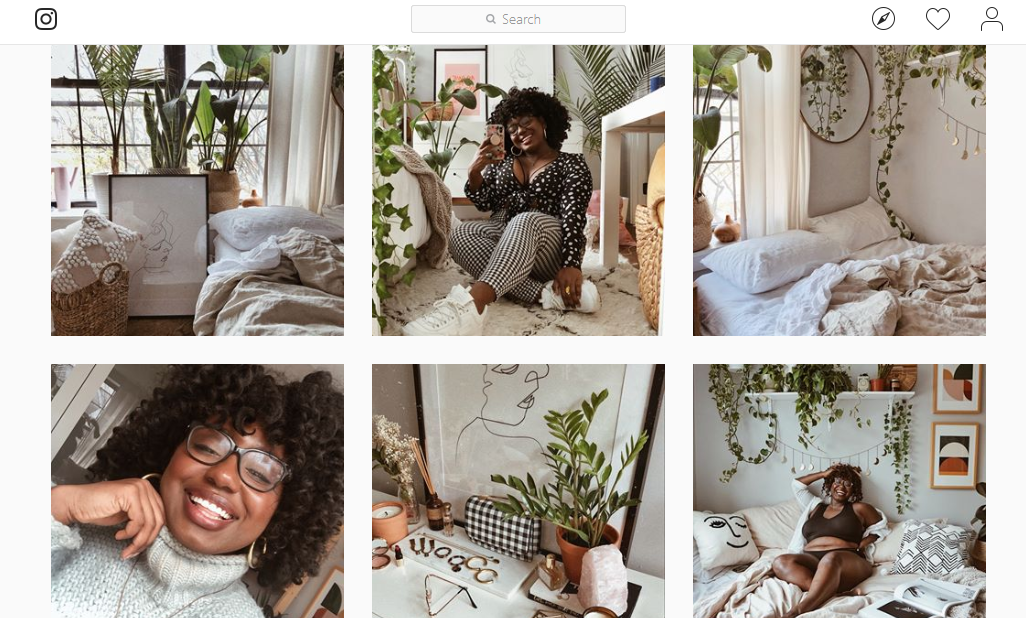 A trick you can use to make your feed appealing is to have a uniform palette. Take a look at Janea Brown’s Instagram Feed. Most of her Instagram posts feature a white background or major elements of white. To finish off, she adds elements of green by featuring plants in her photos.